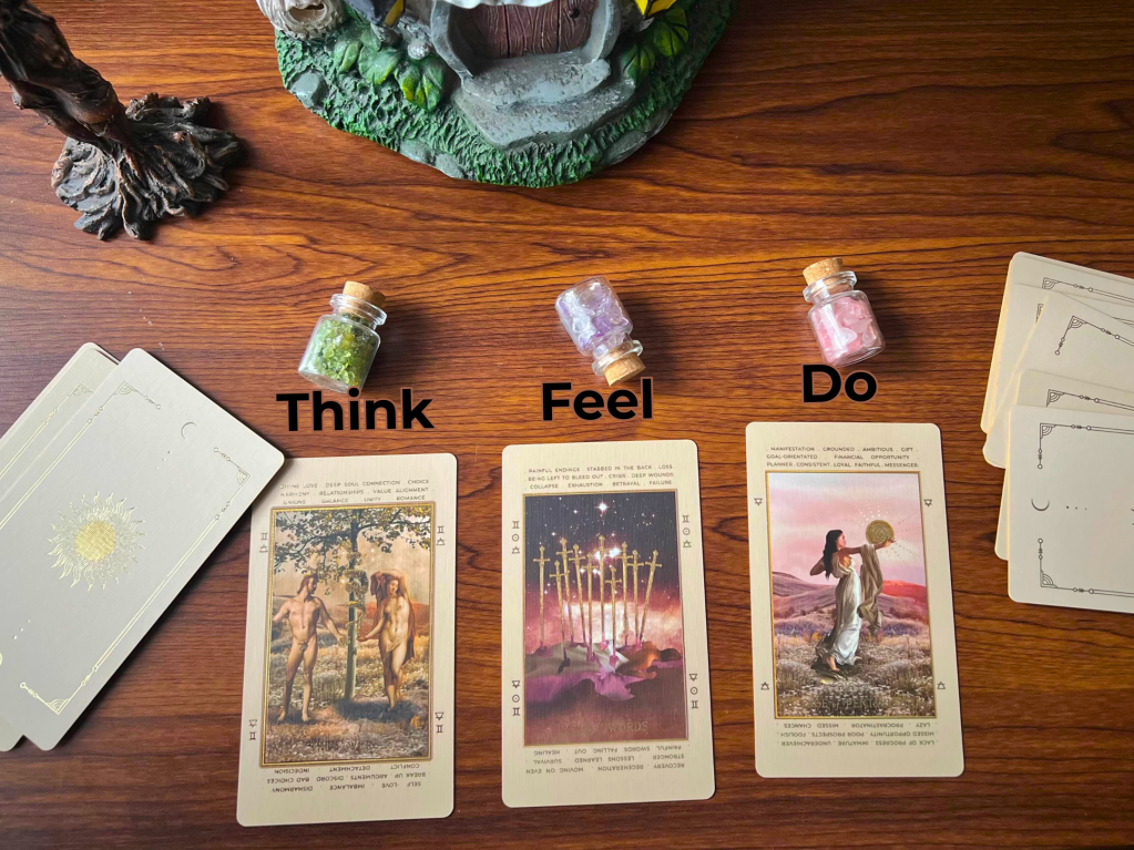 Sometimes emotions and how we react can be confusing, so the last spread I would recommend for beginners helps clarify how you think, feel and do. It’s best used to ensure your actions are what you intend them to be and to learn more about yourself.